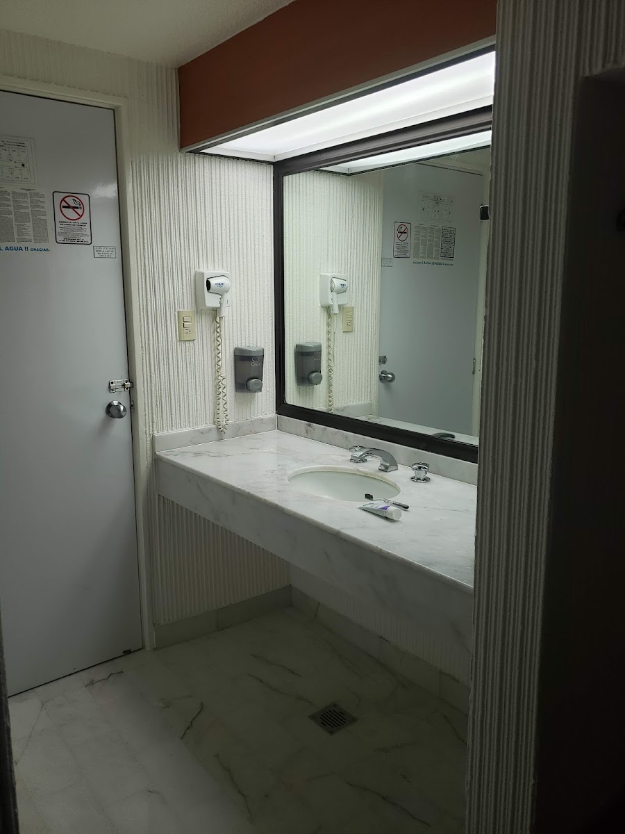 Restos de una vieja gloria; Habitaciones amplias y aseadas, pisos en piedra y contrachapado, baños limpios, pero le sensación de ser atendido por una ventanilla pequeña como en un antro, los pocos servicios extra y la ya muy comentada falta de cortina en el baño reducen la experiencia. Al final si no necesitas un hotel para disfrutarlo, si solo necesitas dormir y pasa el día turisteando, es todo lo que necesitas.